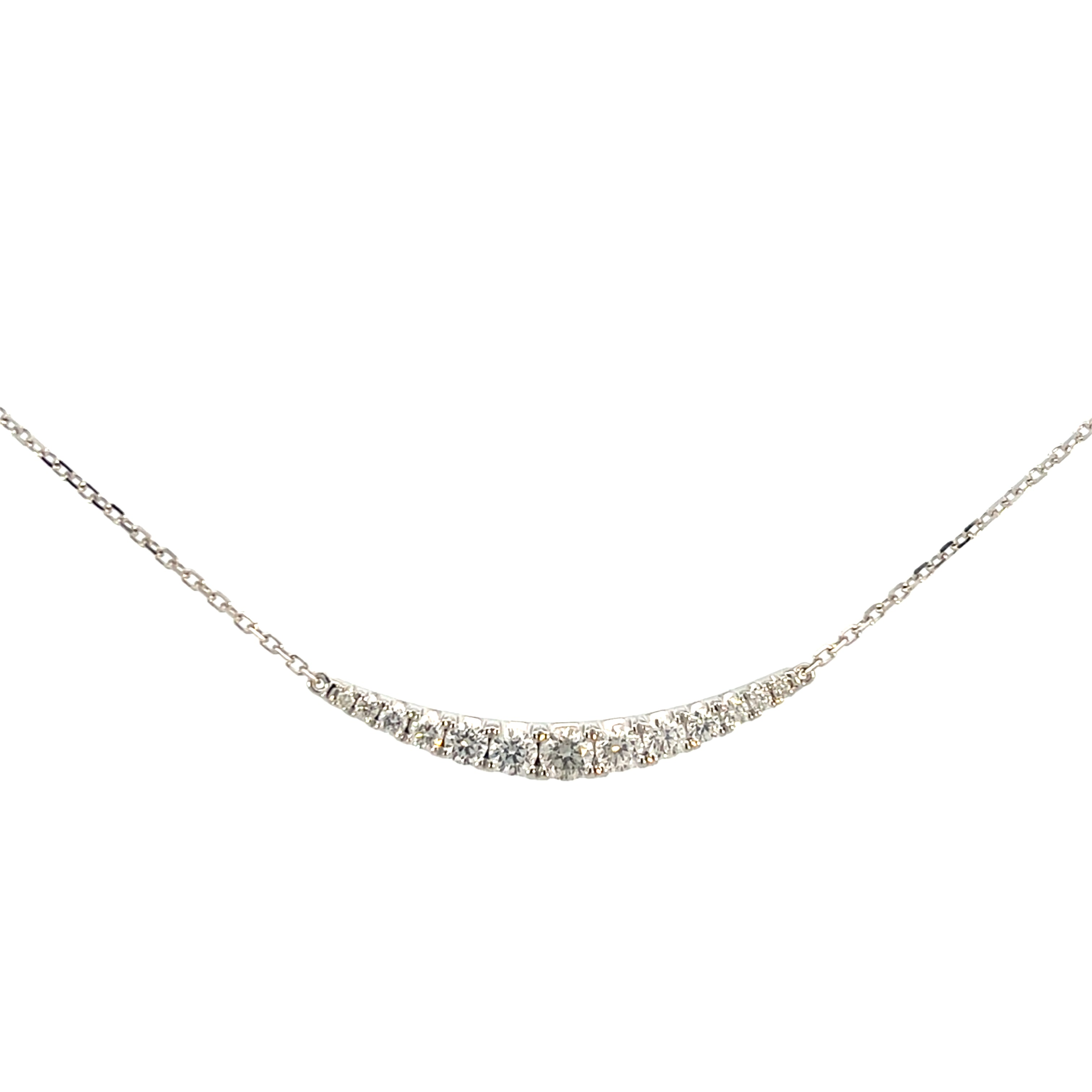14K White Gold Smile Pendant with 14K White Gold Necklace set with 13 Round-shape Diamonds . This necklace's total carat weight is .50ctw.
