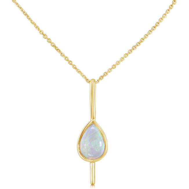 14K Yellow Gold Drop Pendant set with 1 Fancy-shape Opal (1.16ctw) on a 14K Yellow Gold Necklace. This necklace's total carat weight is xxxctw.