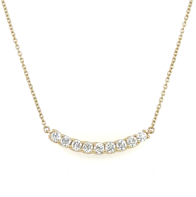 14K Yellow Gold Smile Pendant with 14K Yellow Gold Cable Link Necklace set with Round-shape Diamond H-I Color SI Clarity . This necklace's total carat weight is .35ctw.