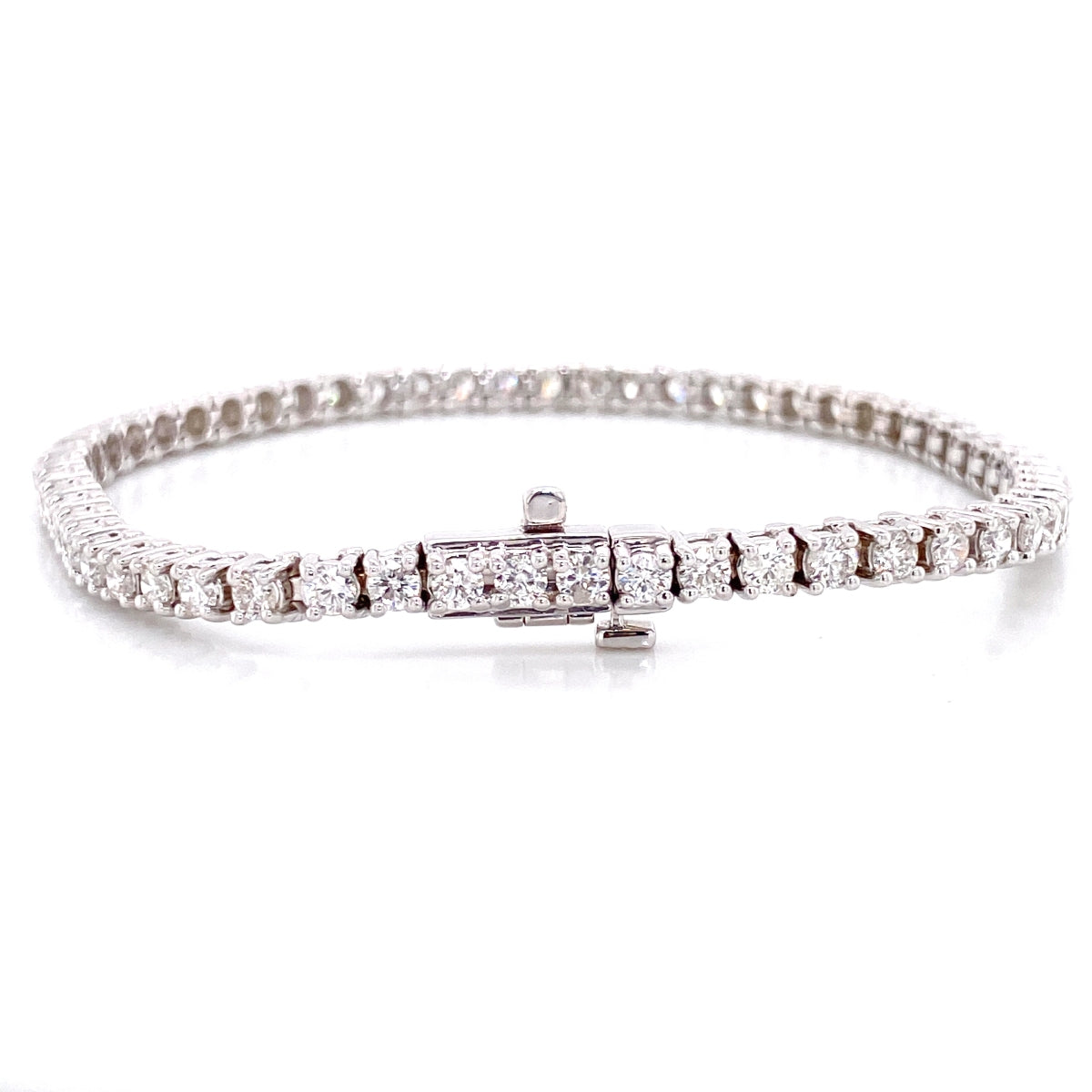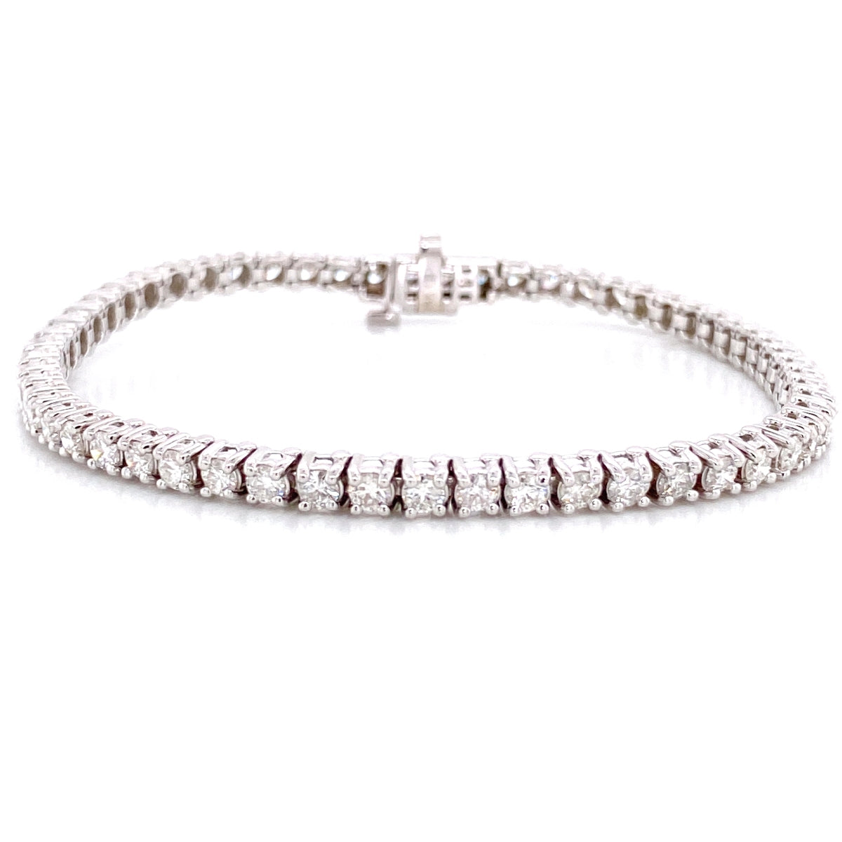 Bremer Jewelry 14K White Gold Tennis Diamond Bracelet set with Round-shape Diamonds I-J Color I1 Clarity . This bracelet's total carat weight is 4.00ctw.