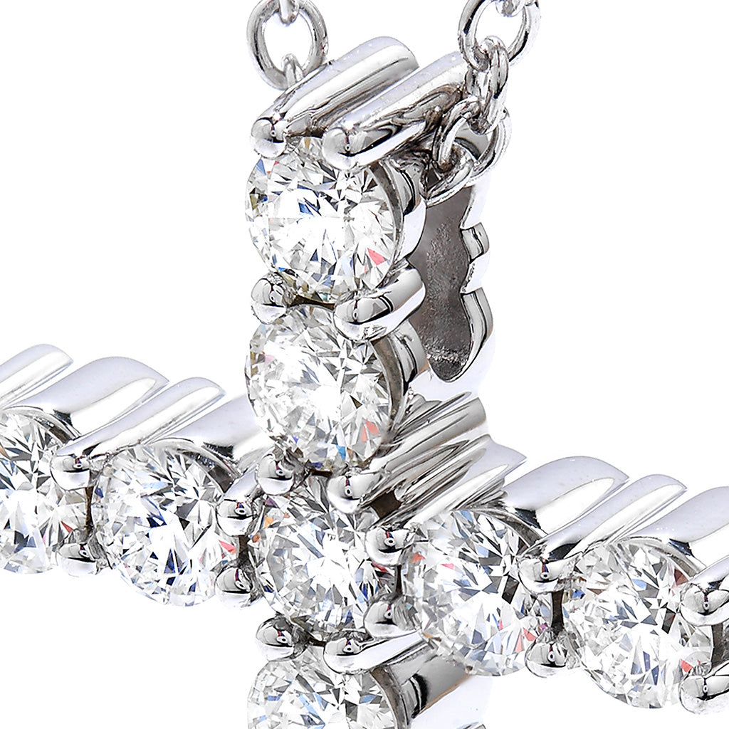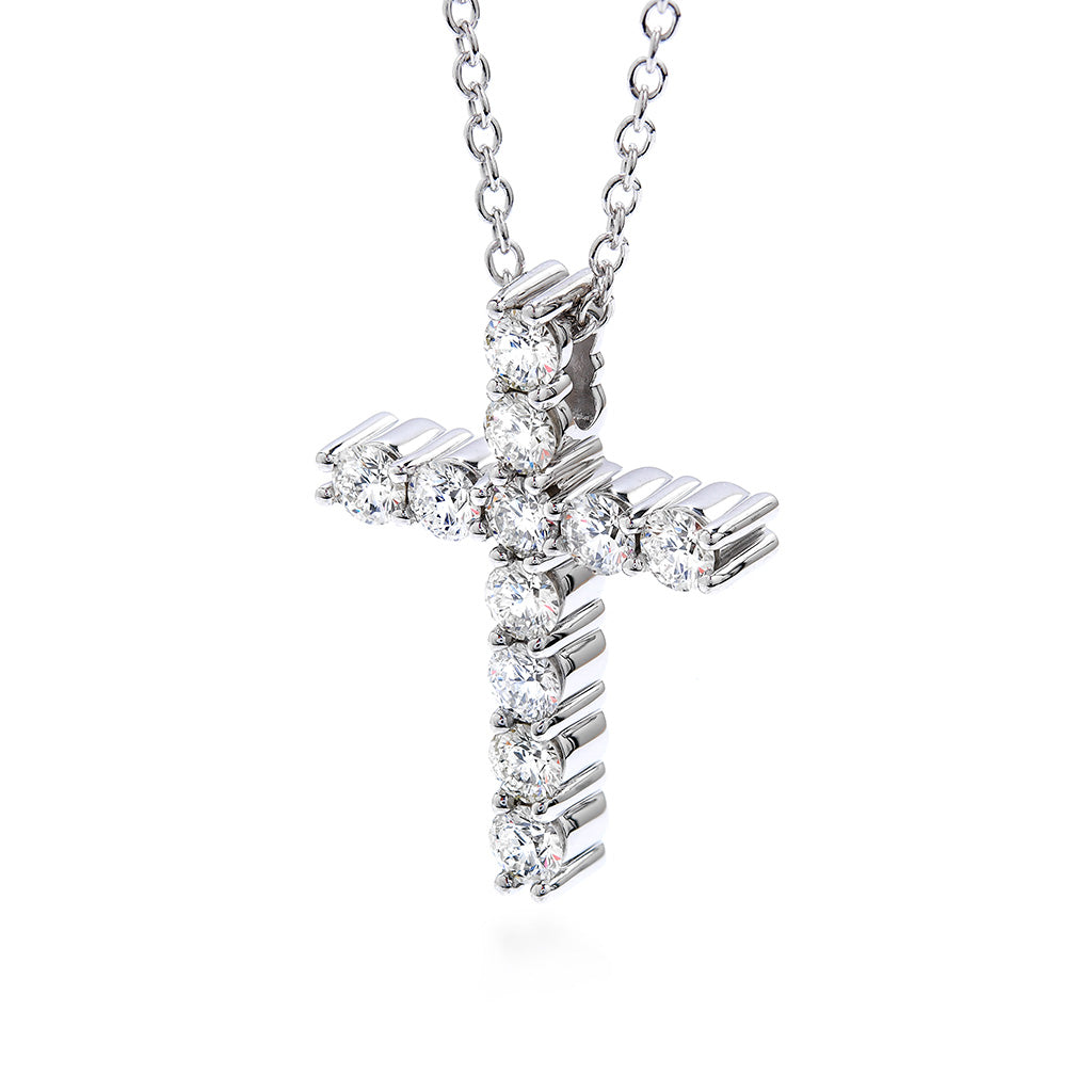 Hearts On Fire 18K White Gold Cross Pendant with 18K White Gold Necklace set with 11 Round-shape Diamonds (0.16ct) I-J Color SI Clarity . This necklace's total carat weight is .16ctw.