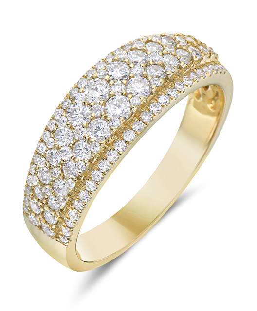 14K Yellow Gold Half Anniversary Fashion Ring set with Round-shape Diamond H-I Color SI Clarity . This ring's total carat weight is 1.00ctw.