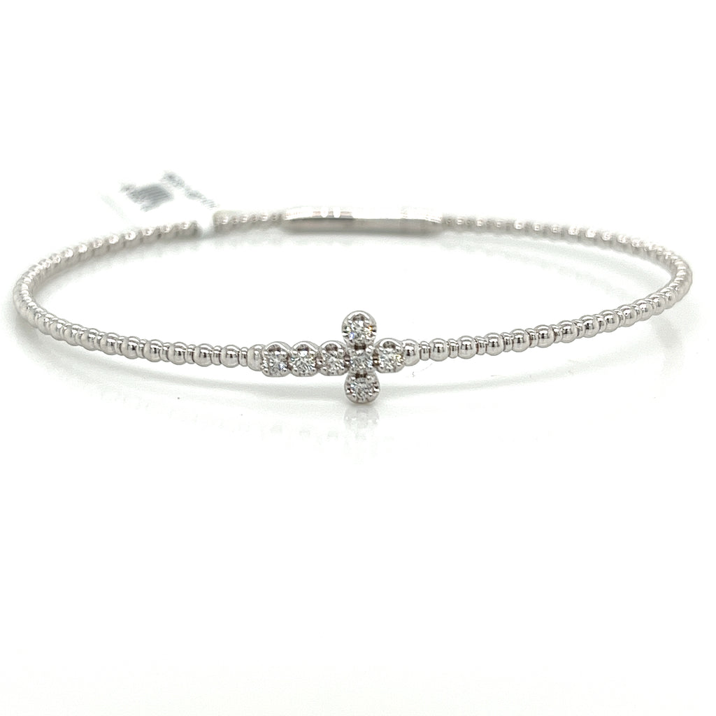 Cross Bangle Diamond Bracelet in 14K White Gold (.16ctw)
