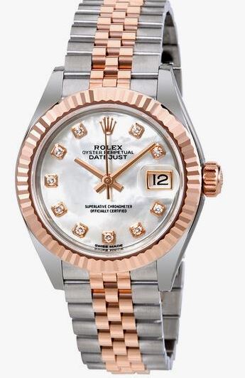 Pre-Ownd Rolex Lady Datejust Mother of Pearl Diamond Steel and 18K Everose Gold Jubilee Watch 28MM