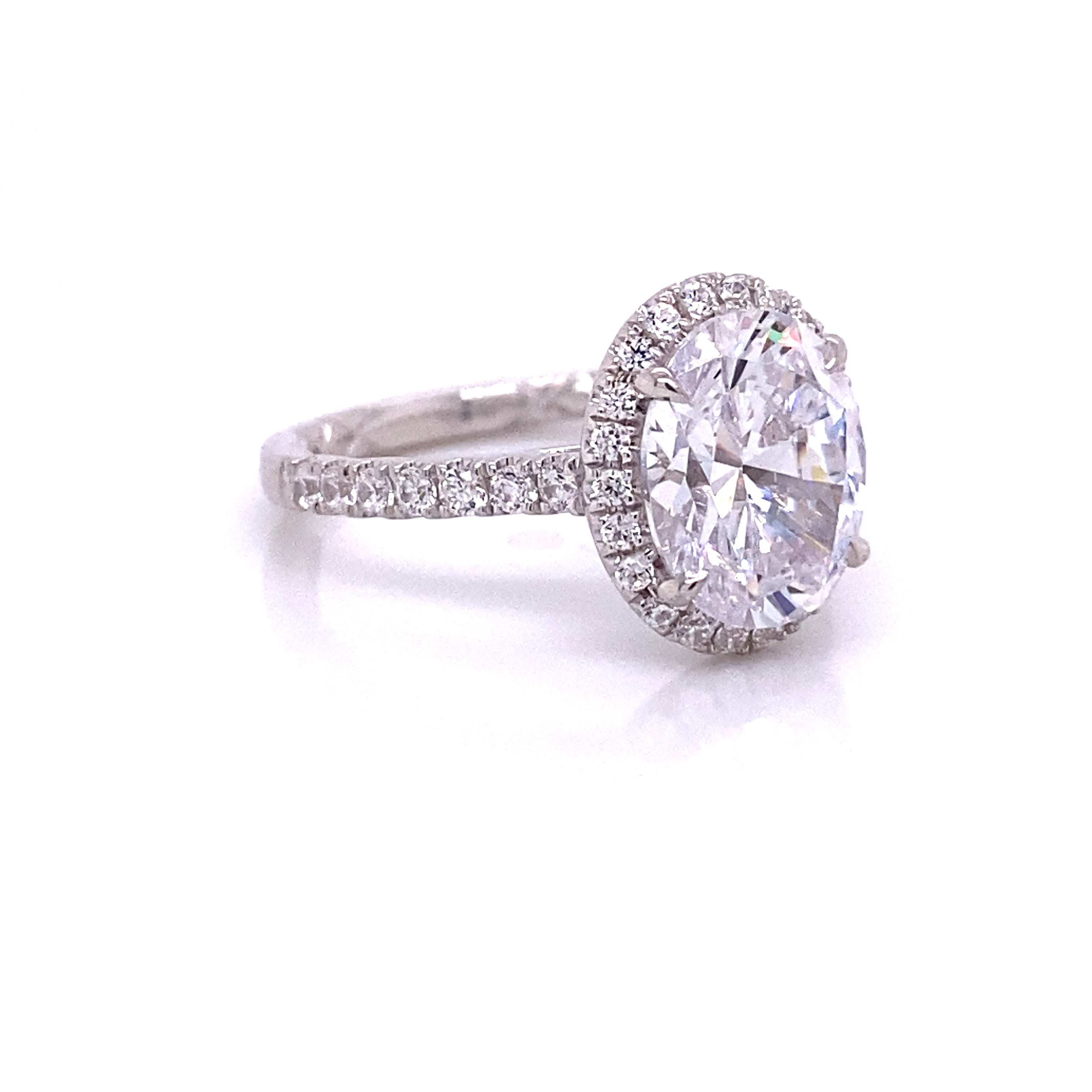 A. JAFFE 14K White Gold Diamond Engagement Ring Setting designed to hold a 3.00 carat Oval shape center stone and set with 36 Round-shape side Diamonds (0.42ctw) G-H Color SI Clarity.