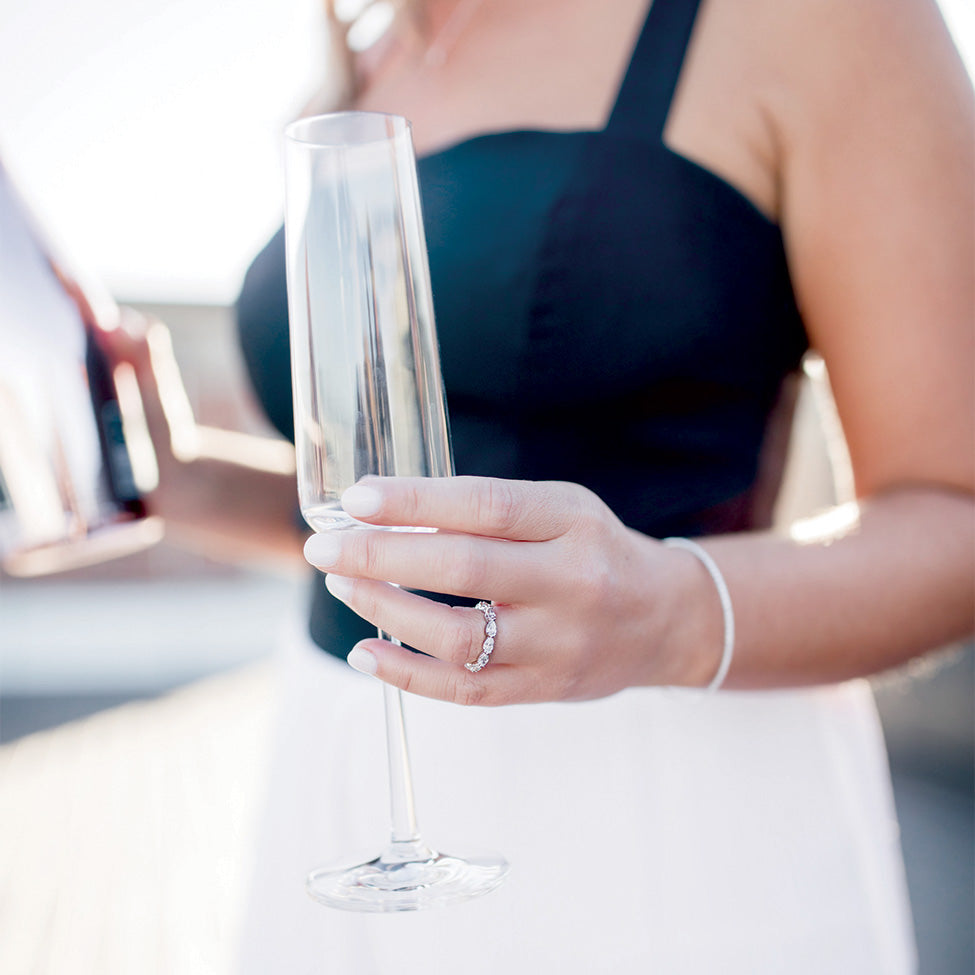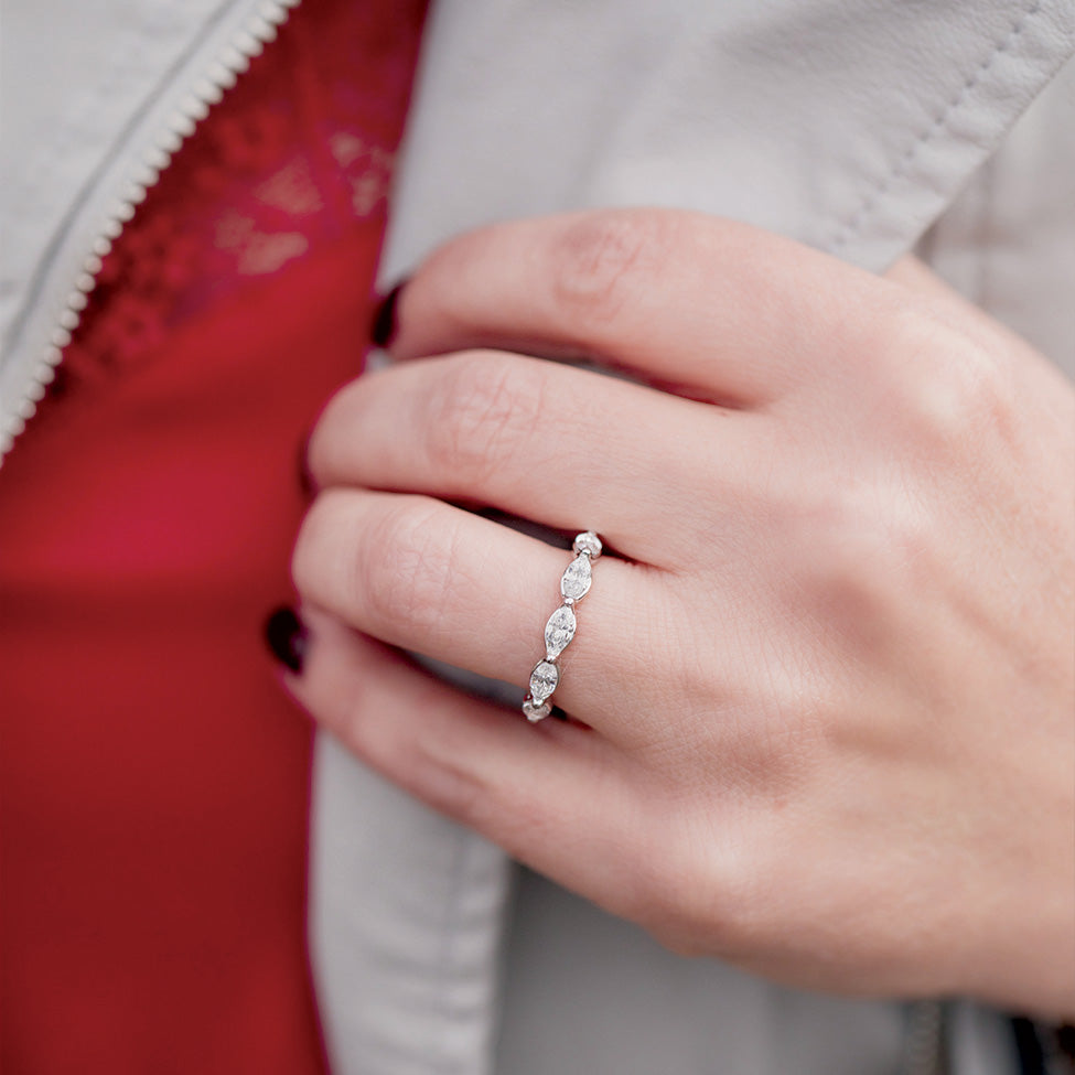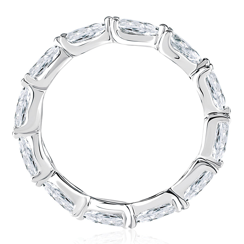 Encircle your entire finger in spectacular pear shaped diamonds with this timeless, diamond eternity ring that’s perfect for a wedding band or anniversary surprise. The “starting at” price is listed above. All A. Jaffe Eternity Rings are crafted specifically for you, so pricing varies based on finger size, metal type, and total diamond carat weight (special order time varies 4-6 weeks). Visit our stores to try on over 60 eternity band models, then customize your very own for a perfect fit! Picture here shows the 2.88 ctw version in a finger size 7.