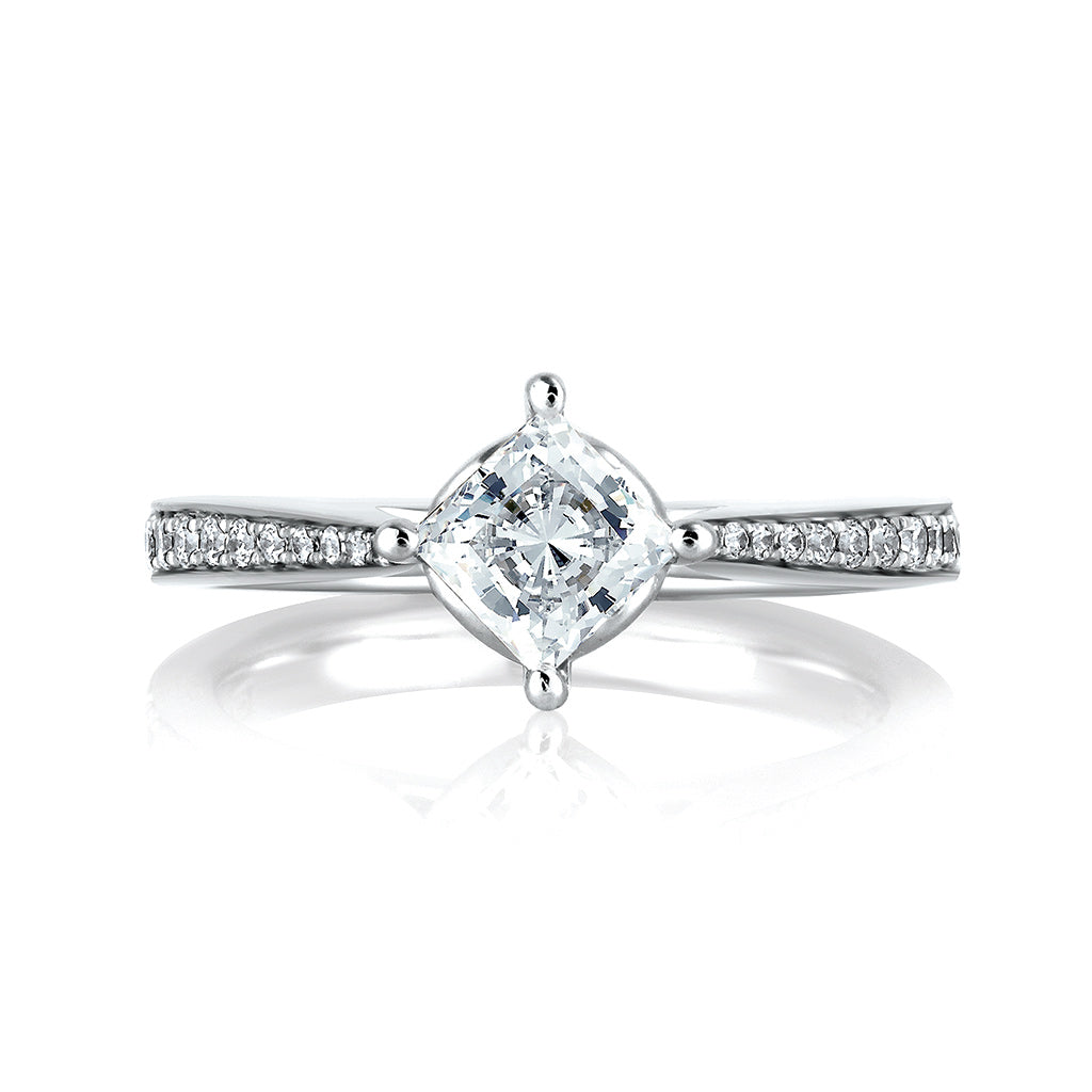A. JAFFE 14K White Gold Side Stone Diamond Engagement Ring Setting designed to hold a 0.75 carat 5mmX5mm Princess shape center stone and set with Round-shape side Diamonds (0.17ctw) H Color SI Clarity.