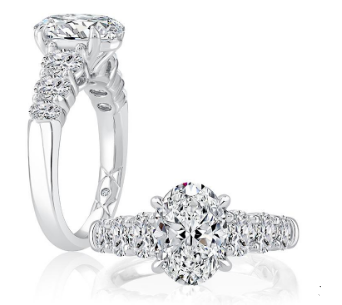 A. JAFFE Oval Center Side Stone Diamond Engagement Ring Setting in 14K White Gold (1.66ctw)