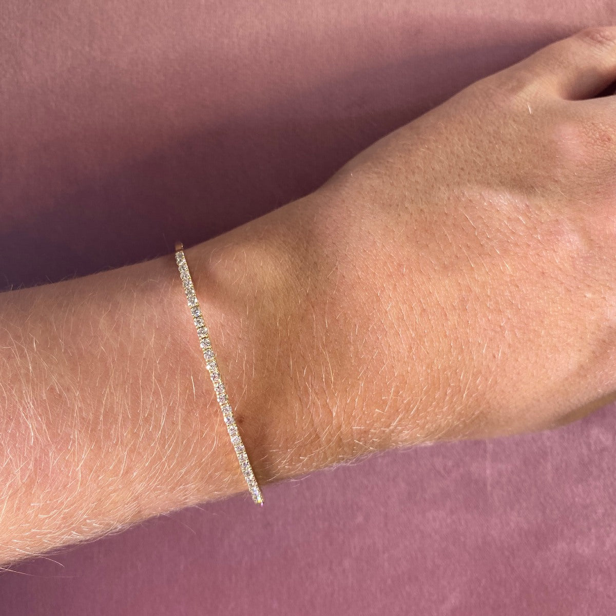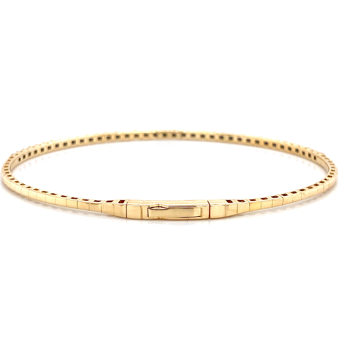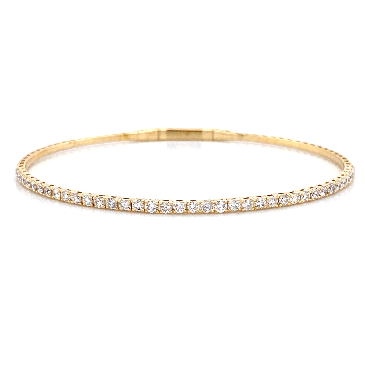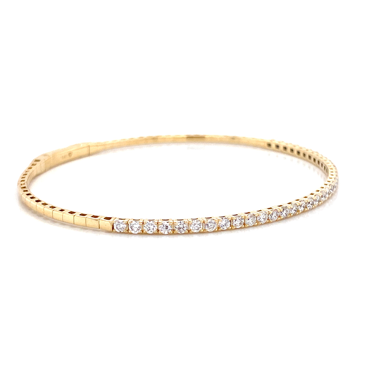 Bremer Jewelry 14K Yellow Gold Bangle Diamond Bracelet set with 37 Round-shape Diamonds G-H Color I1/I2 Clarity . This bracelet's total carat weight is 1.00ctw.
