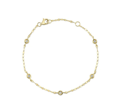 14K Yellow Gold Station Diamond Bracelet set with 5 Round-shape Diamonds H-I Color SI Clarity . This bracelet's total carat weight is .10ctw.