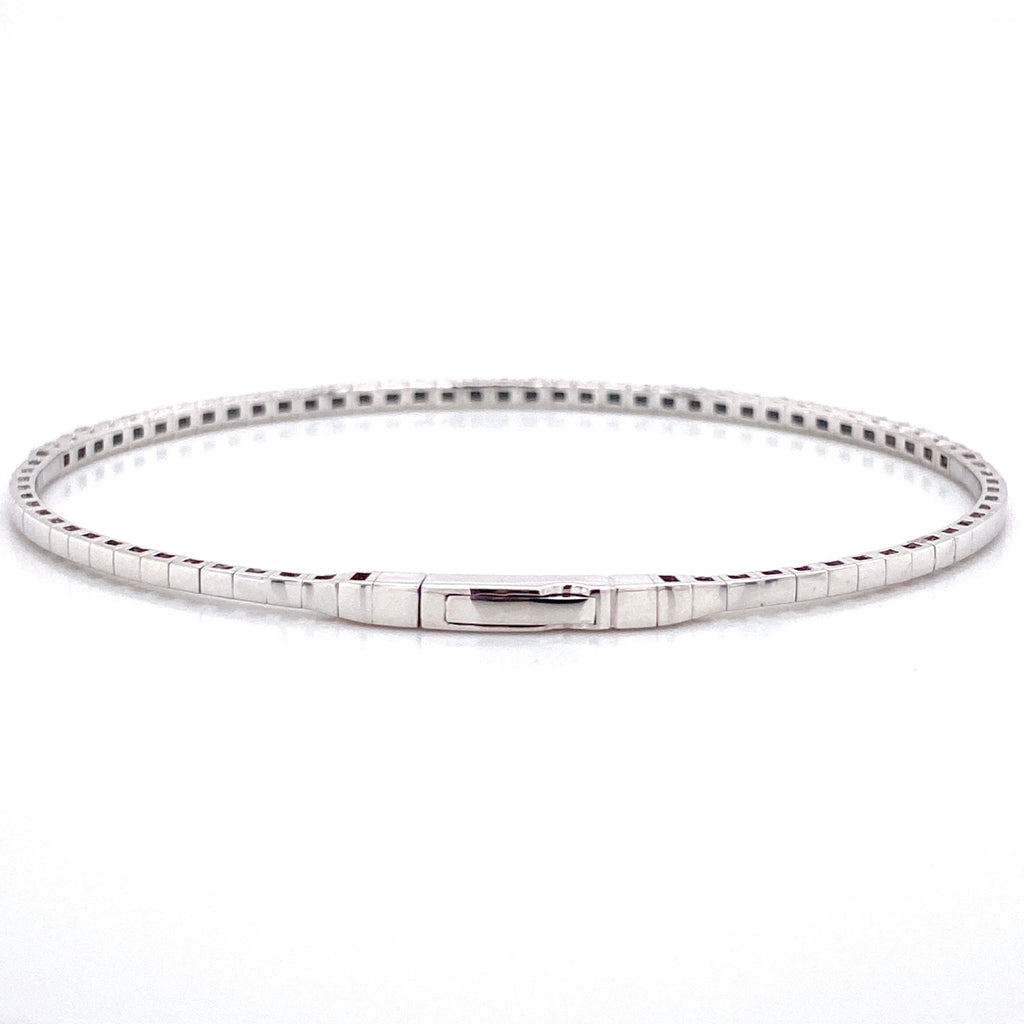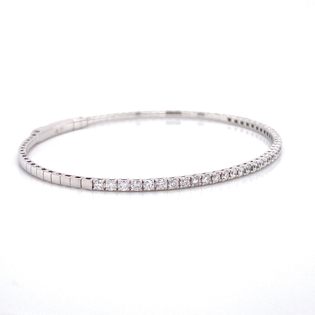 Bremer Jewelry 14K White Gold Bangle Diamond Bracelet set with 37 Round-shape Diamonds G-H Color I1/I2 Clarity . This bracelet's total carat weight is 1.00ctw.
