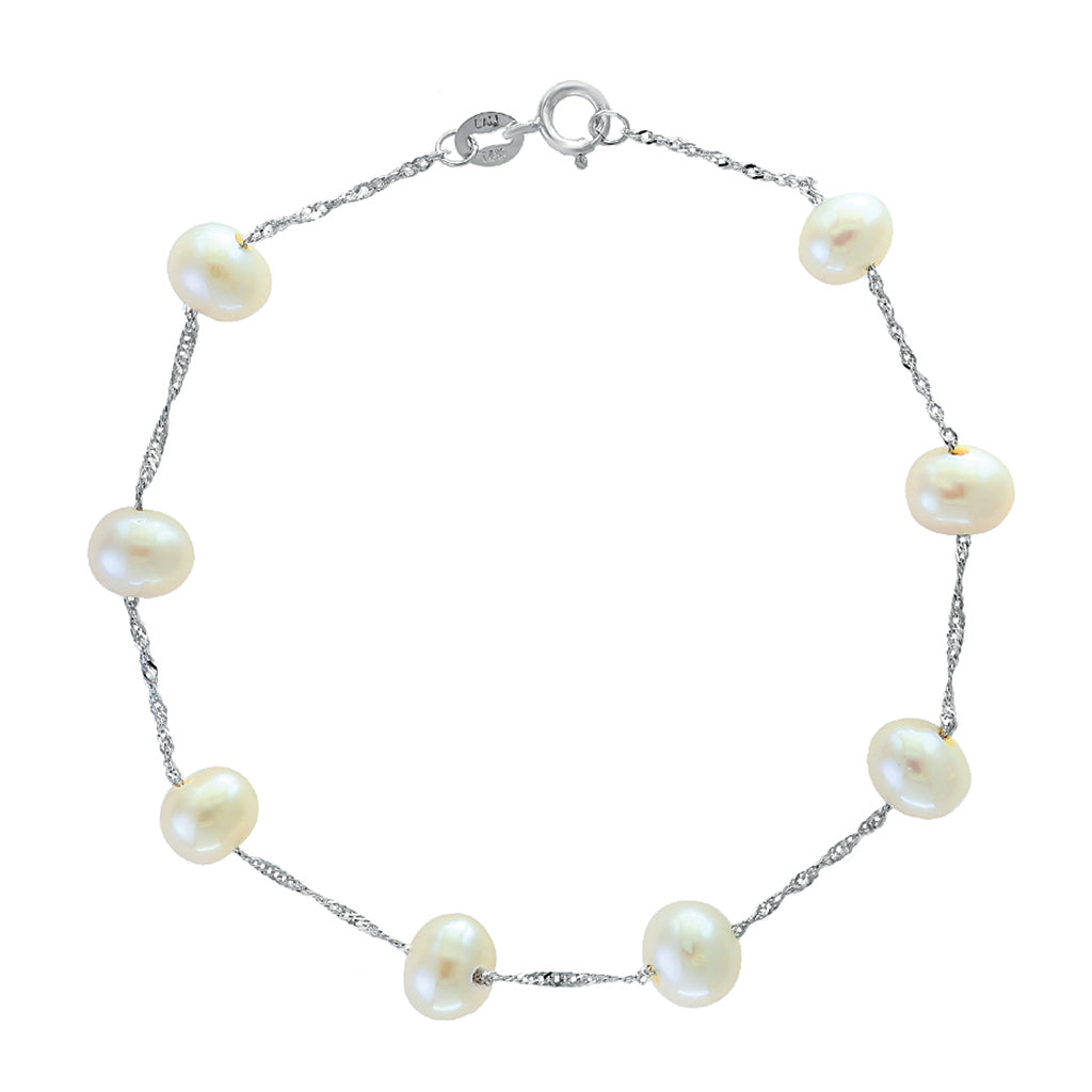 Bremer Jewelry Freshwater Cultured Station Pearl Bracelet in 14K White Gold