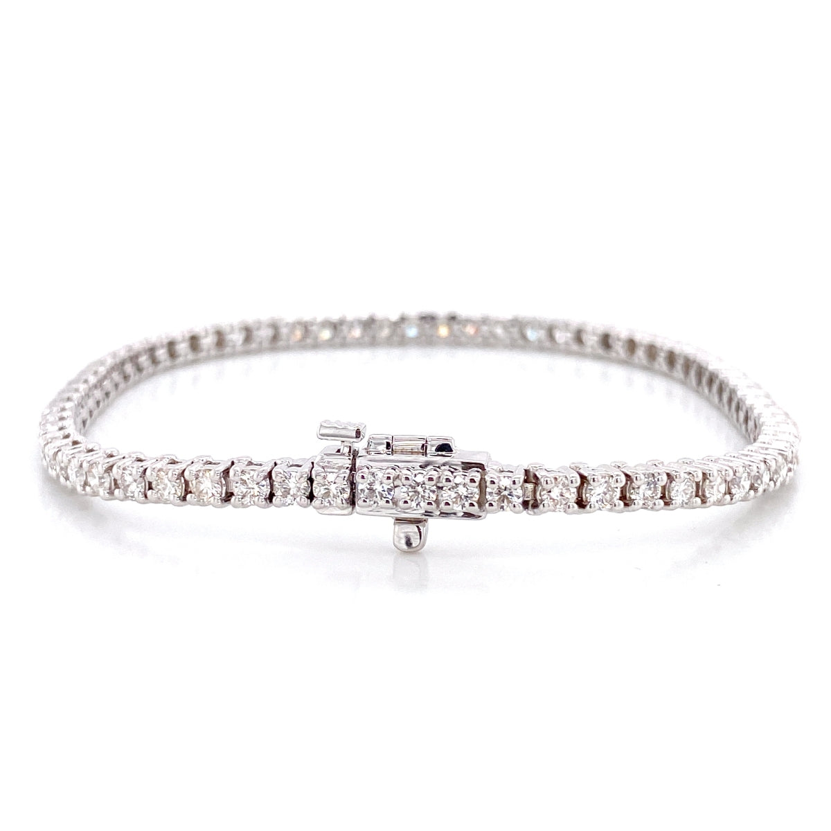 Bremer Jewelry 14K White Gold Tennis Diamond Bracelet set with Round-shape Diamonds I-J Color I1 Clarity . This bracelet's total carat weight is 3.00ctw.
