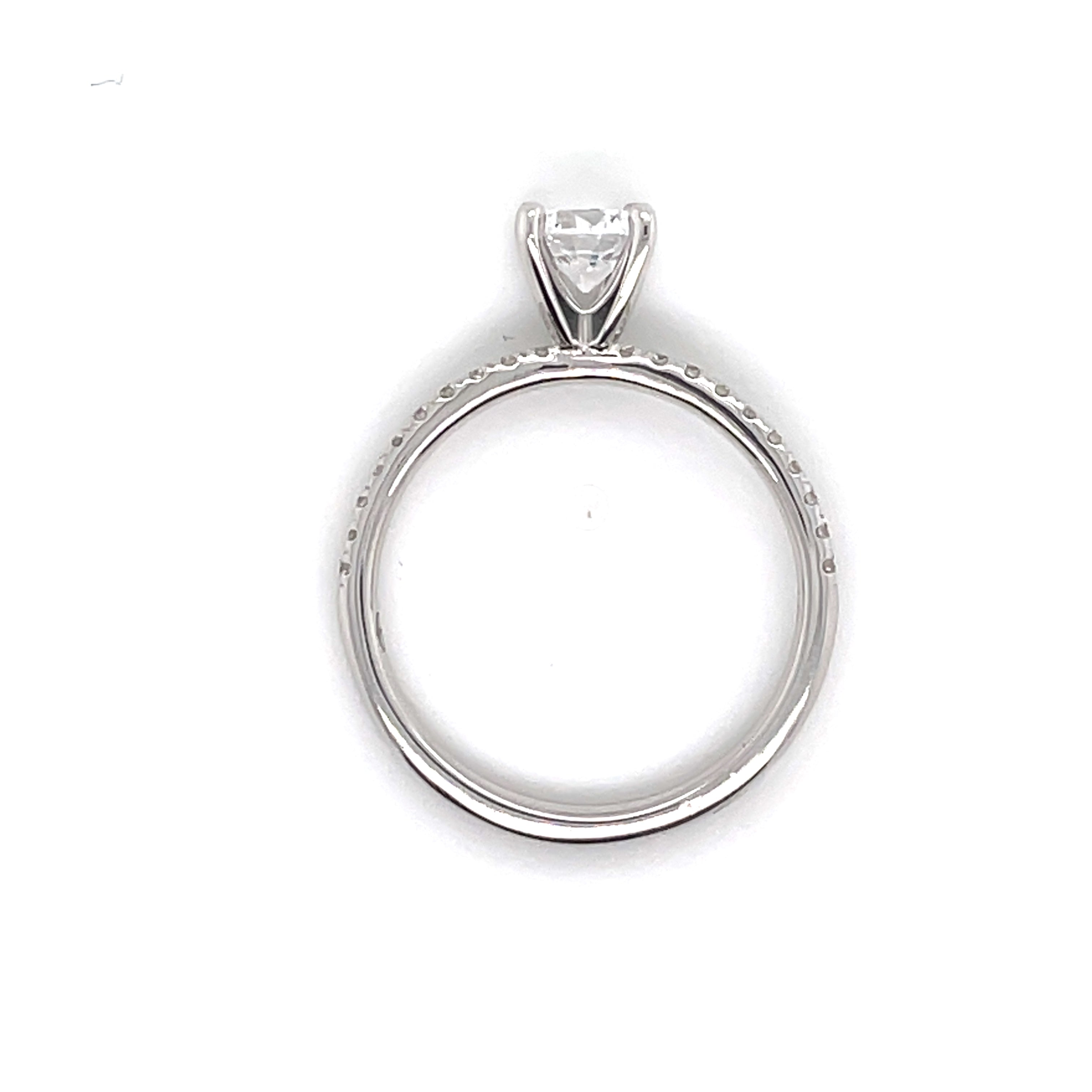This ring is a size 7. Sizing is available (up/down one size) in our stores for this Semi-Ready Ring. Shop for your center diamond or gemstone in our store and have this engagement ring ready for that special proposal in just 10-14 days.