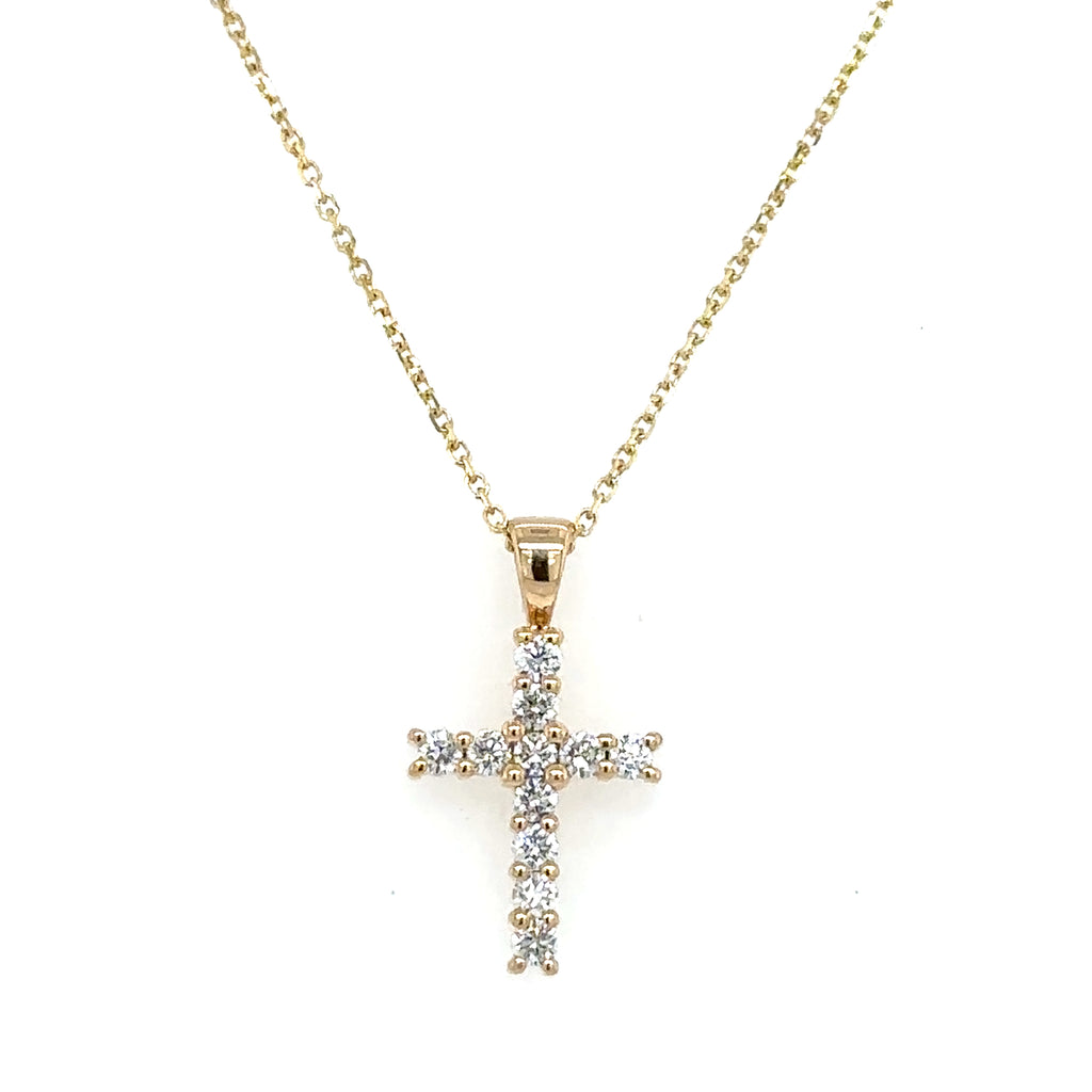 14K Yellow Gold Round Shape Diamond Cross Necklace (1.00ctw)