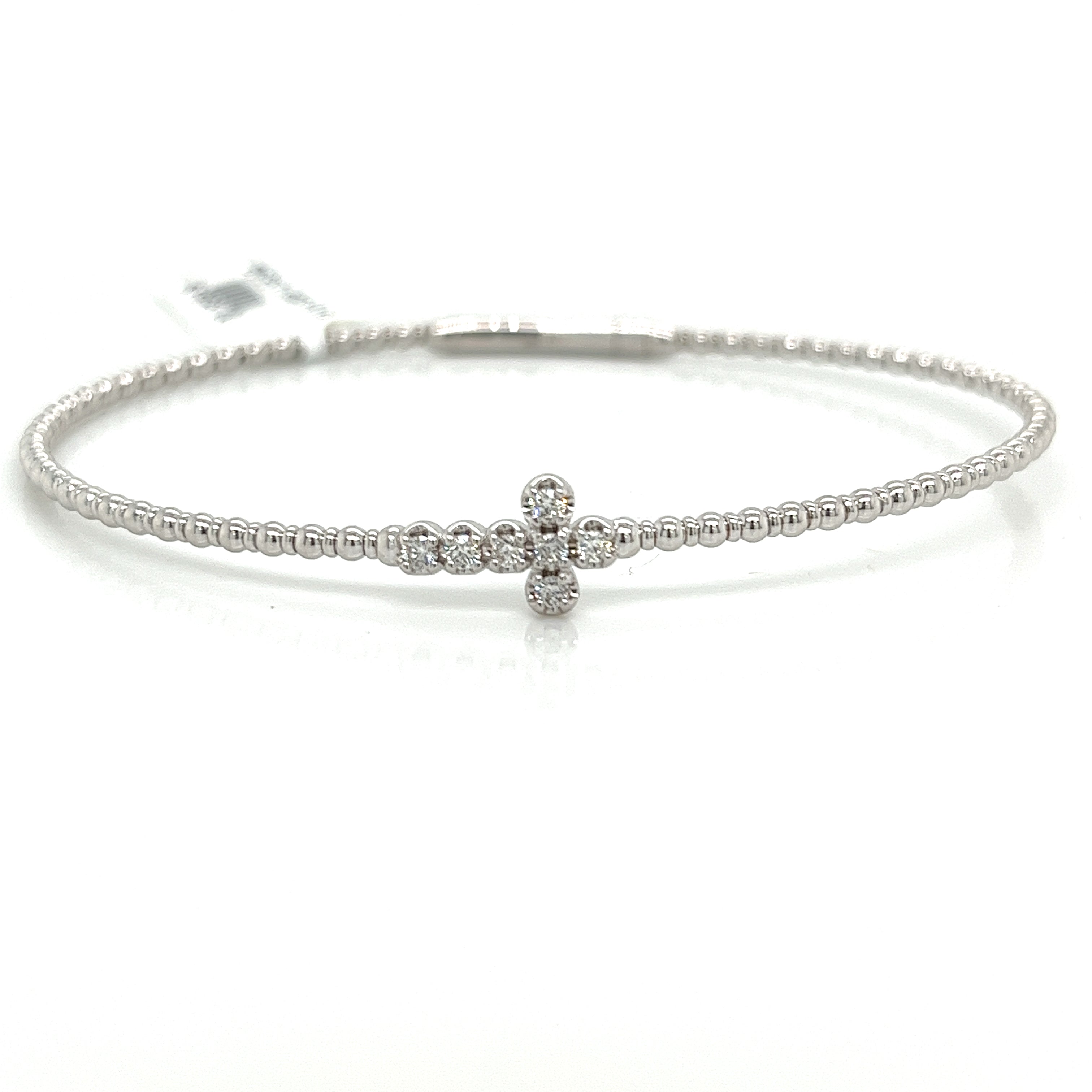 14K White Gold Bangle Diamond Bracelet set with Round-shape Diamond H-I Color SI Clarity . This bracelet's total carat weight is .16ctw.