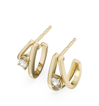 Noam Carver Strata Collection 14K Yellow Gold Polished Small Hoop Diamond Earrings set with 2 Oval-shape Diamonds (0.20ctw) G-H Color SI2 Clarity . These earrings' total carat weight is .20ctw.