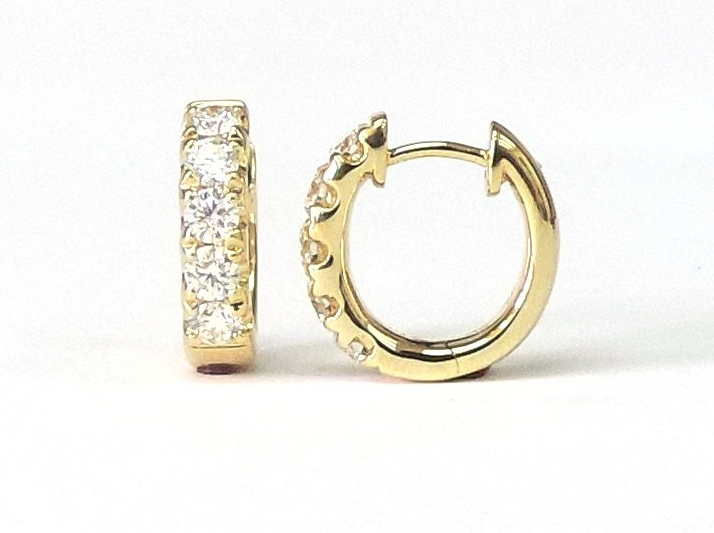 14K Yellow Gold Polished Huggie Diamond Earrings set with 5 Round-shape Diamonds (1.00ctw) . These earrings' total carat weight is xxxctw.