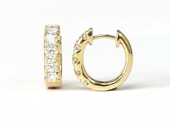14K Yellow Gold Polished Huggie Diamond Earrings set with 10 Round-shape Diamonds (1.00ctw) . These earrings' total carat weight is 1.00ctw.