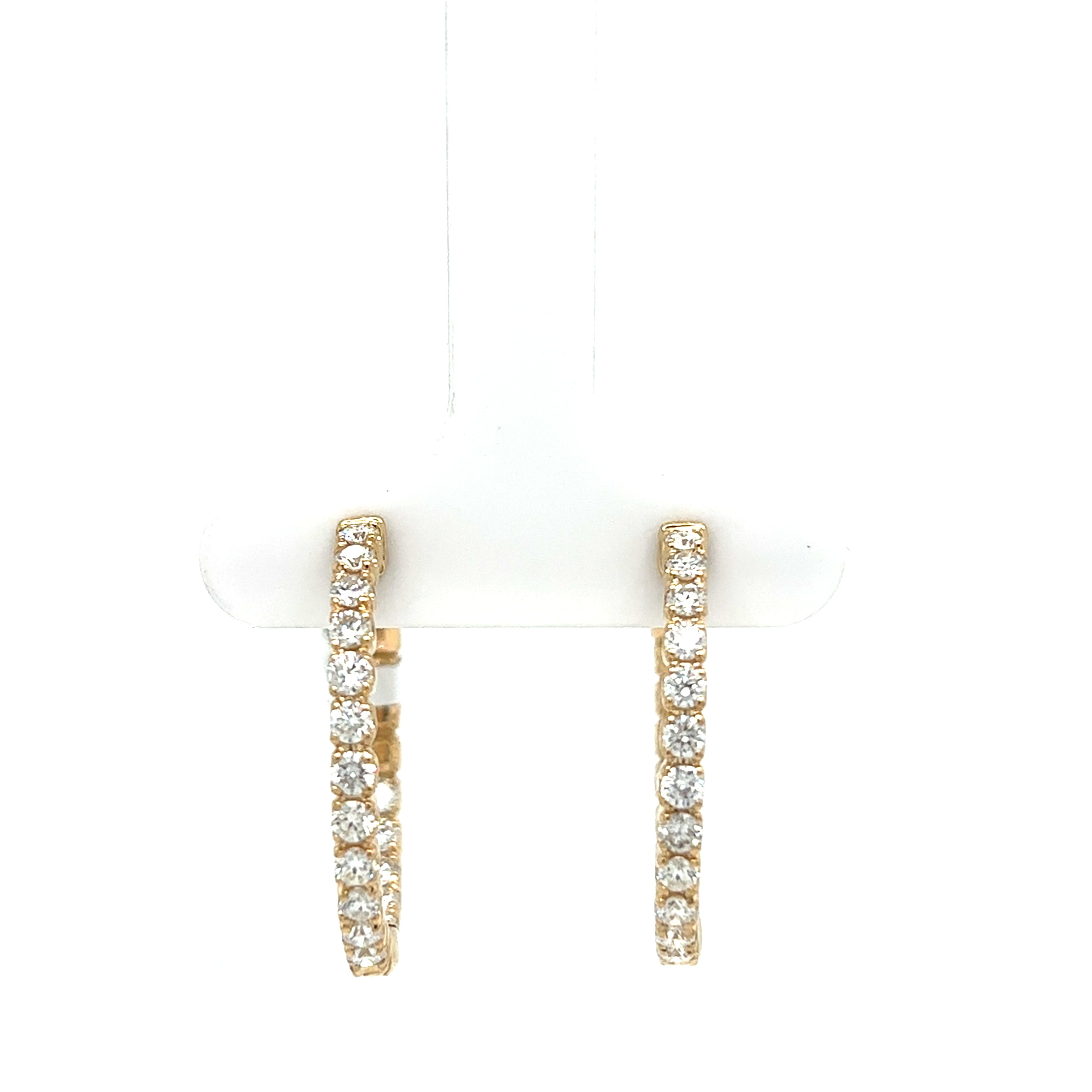 14K Yellow Gold Polished Medium Hoop Diamond Earrings set with Round-shape Diamond (1.50ctw) G-H Color SI Clarity . These earrings' total carat weight is 1.50ctw.