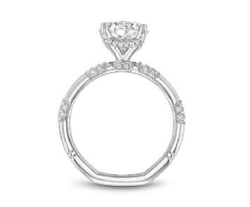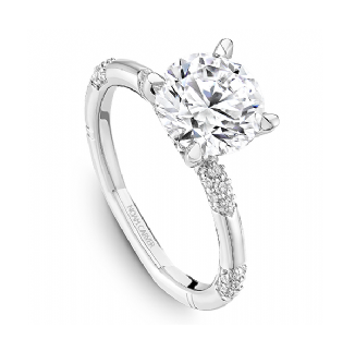 Noam Carver 14K White Gold Side Stone Diamond Engagement Ring Setting designed to hold a 2.50 carat Round shape center stone and set with 64 Round-shape side Diamonds (0.24ctw) F-G Color VS Clarity.