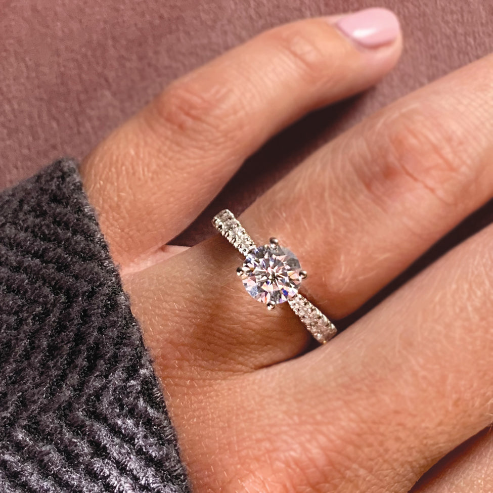 This sample of a Customizable Ring is specially curated to allow you to change metal type and color, diamond size and shape, as well as ring size, through a fully customizable process that usually takes 6-8 weeks. Come in and make your ring exactly what you are looking for!