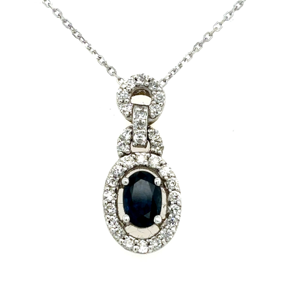 Estate 14K White Gold Oval Shape Sapphire and Diamonds Drop Pendant