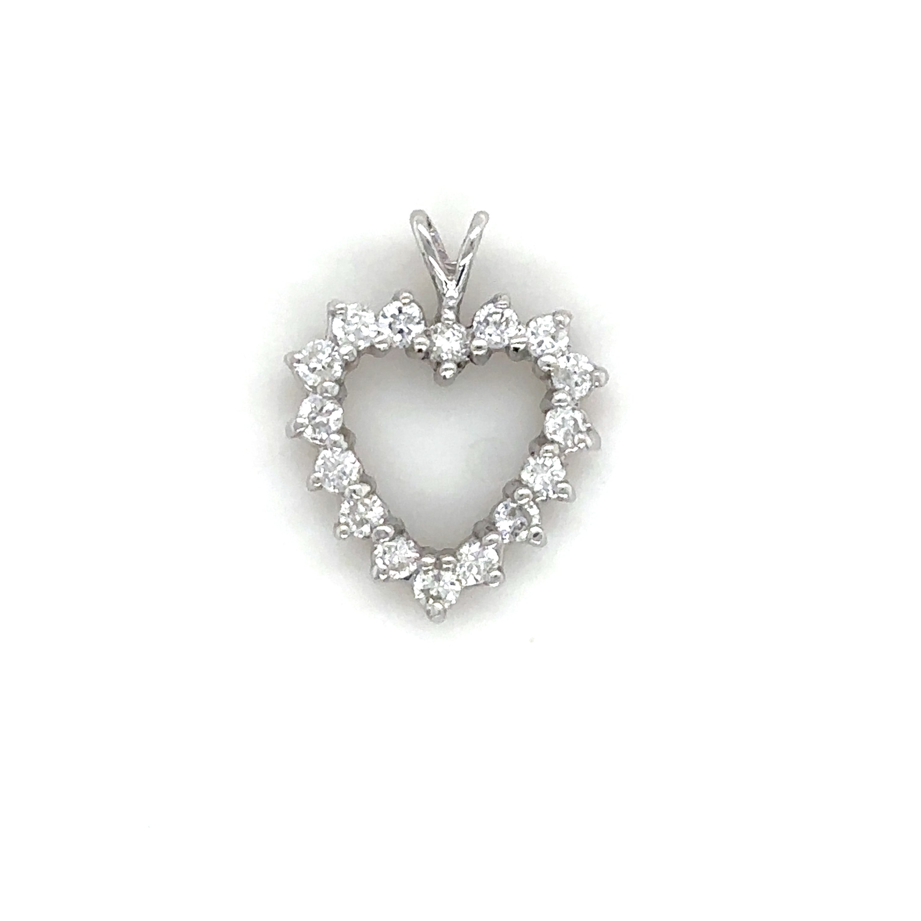 Estate 14K White Gold Heart Pendant with 14K White Gold Cable Link Necklace set with 16 Round-shape Diamonds H-I Color I1/I2 Clarity . This necklace's total carat weight is .32ctw.