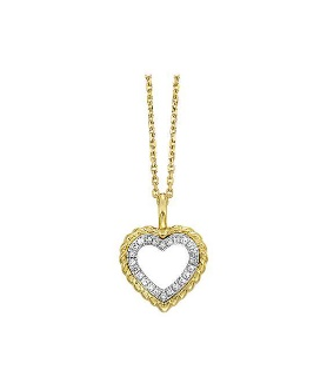 14K Yellow/White Gold Heart Pendant with 14K Yellow Gold Cable Link Necklace set with Round-shape Diamond I-J Color I1/I2 Clarity . This necklace's total carat weight is .05ctw.