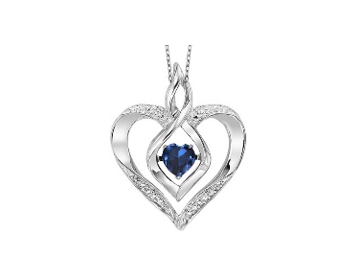925 White Sterling Silver Heart Pendant set with 1 Heart-shape Created Sapphire (0.25ctw) Round-shape side Diamond (0.02ctw) I-J Color I1/I2 Clarity on a 925 White Sterling Silver Cable Link Necklace. This necklace's total carat weight is .27ctw.
