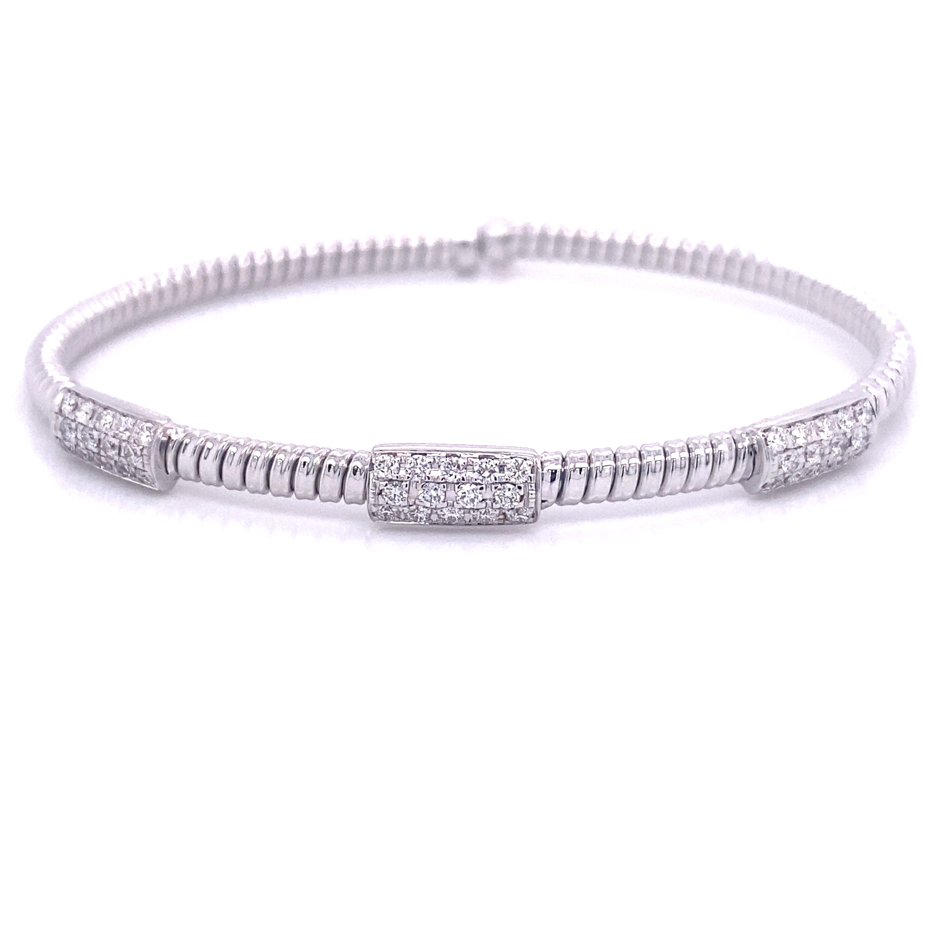 Bremer Jewelry 18K White Gold Bangle Diamond Bracelet set with Round-shape Diamonds G-H Color VS Clarity . This bracelet's total carat weight is 0.40ctw.