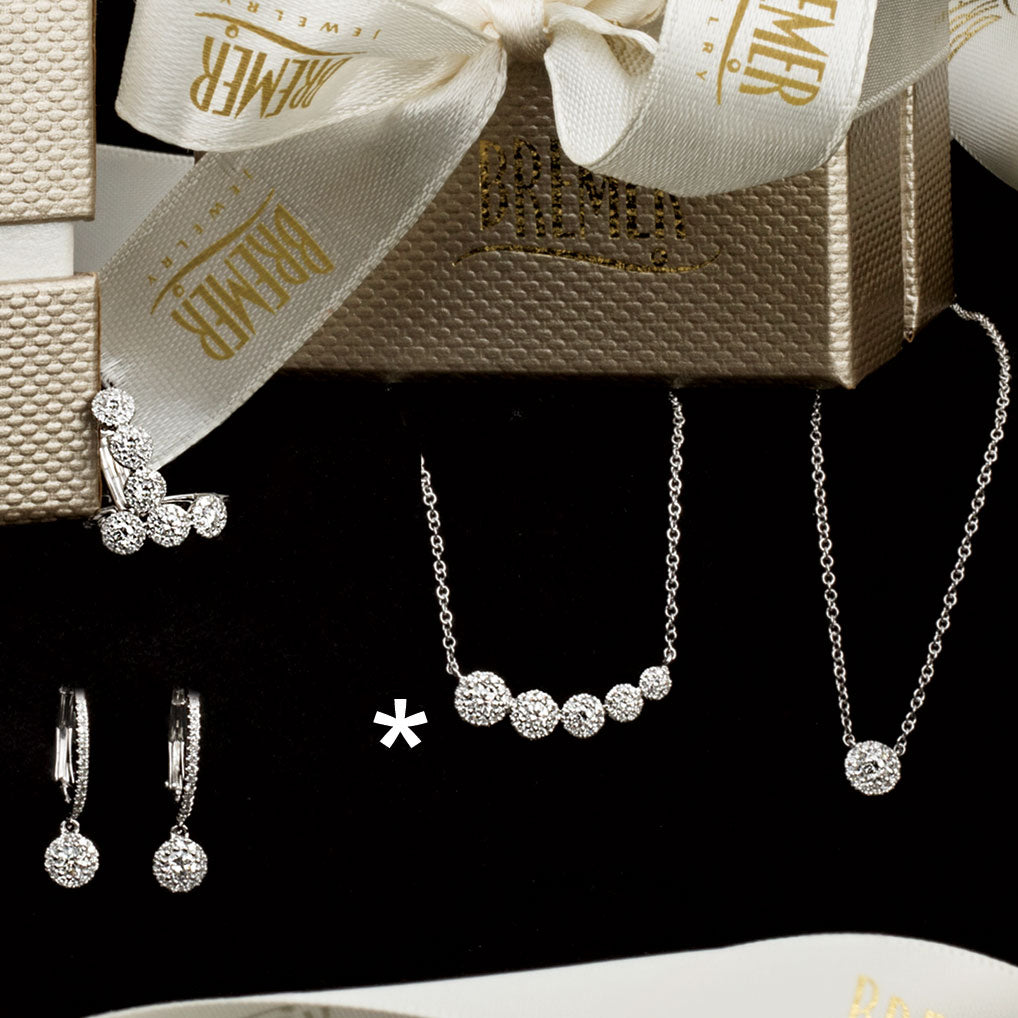 Bremer Jewelry 14K White Gold Multi Cluster Pendant with 14K White Gold Cable Link Necklace set with Round-shape Diamonds H-I Color SI Clarity . This necklace's total carat weight is 0.32ctw.
