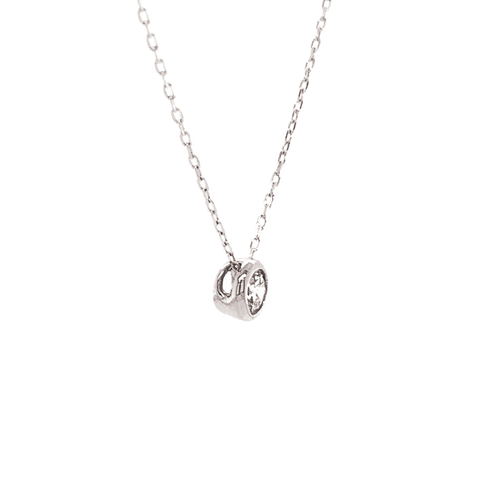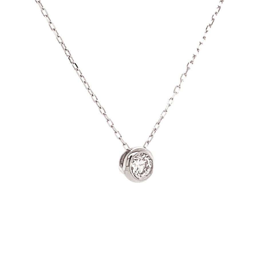 Bremer Jewelry Power of One18K White Gold Bezel Pendant with 18K White Gold Cable Link Necklace set with 1 Round-shape Diamond (0.10ct) H-I Color SI Clarity . This necklace's total carat weight is 0.10ctw.