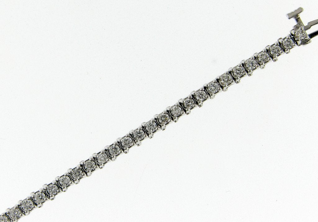 Bremer Jewelry 14K White Gold Tennis Diamond Bracelet set with Round-shape Diamonds I-J Color I1 Clarity . This bracelet's total carat weight is 2.00ctw.