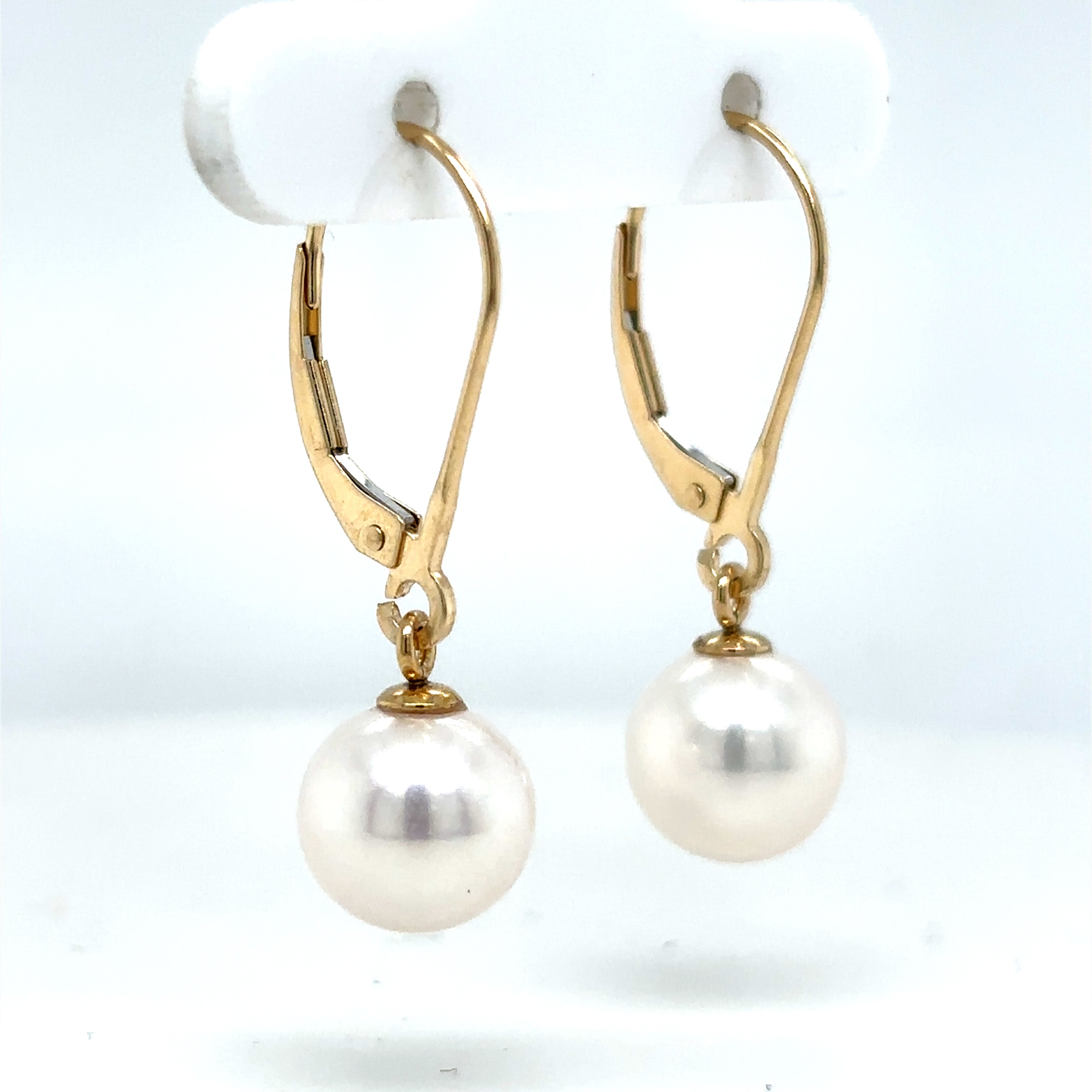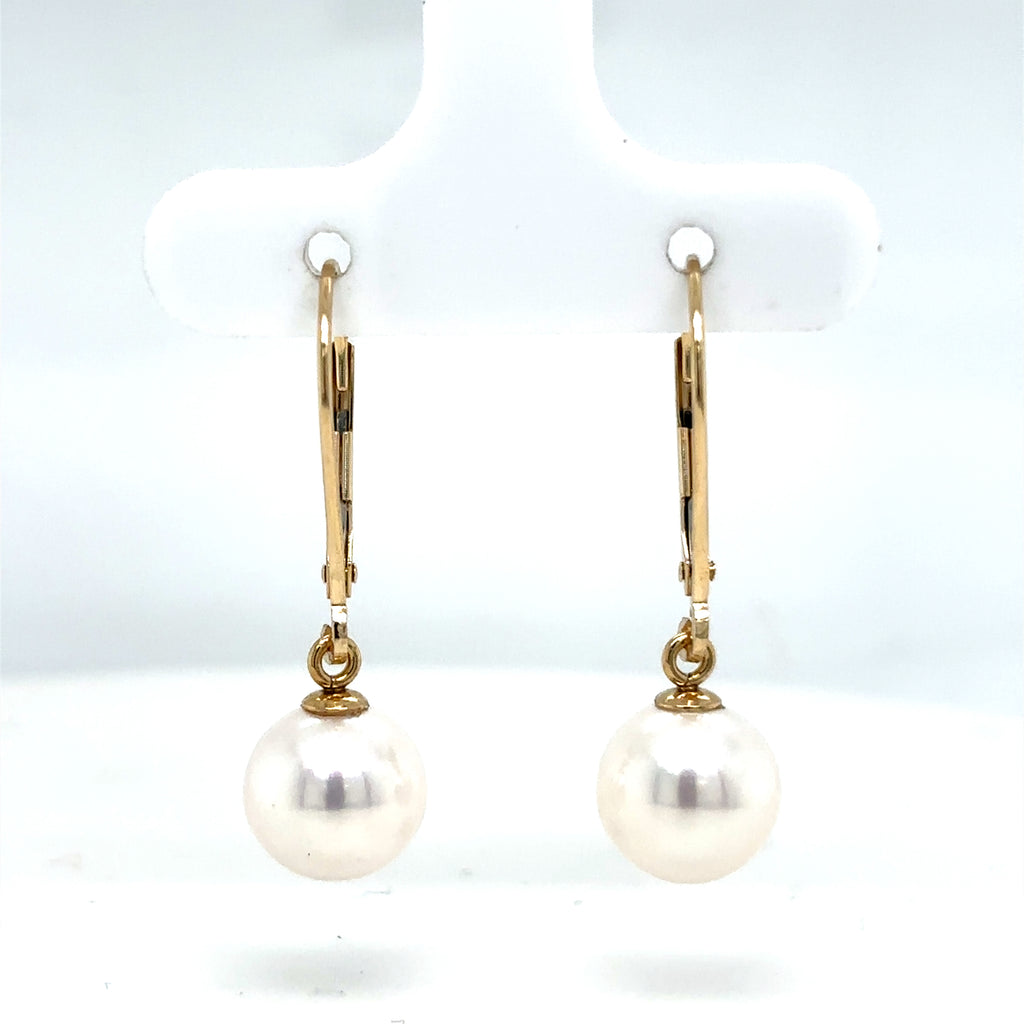 14K Yellow Gold Dangle Freshwater Cultured Pearl Earrings set with 2 Round-shape 8.5mm-9mm Pearls.