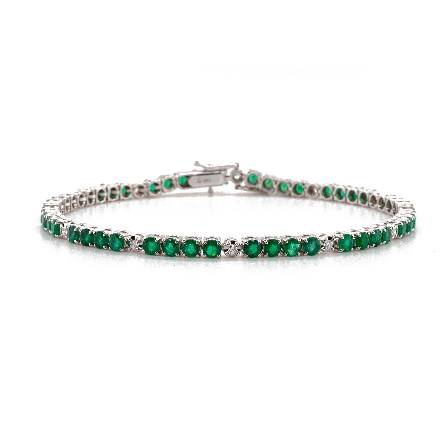 Tennis Emerald Gemstone Bracelet in 14K White Gold (4.45ctw)