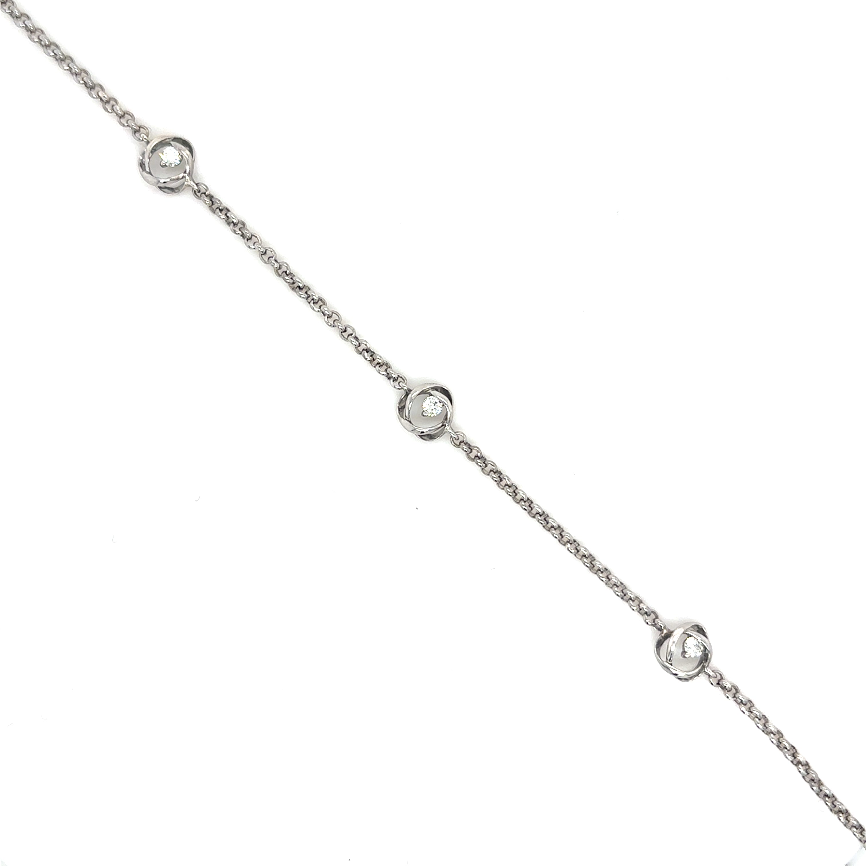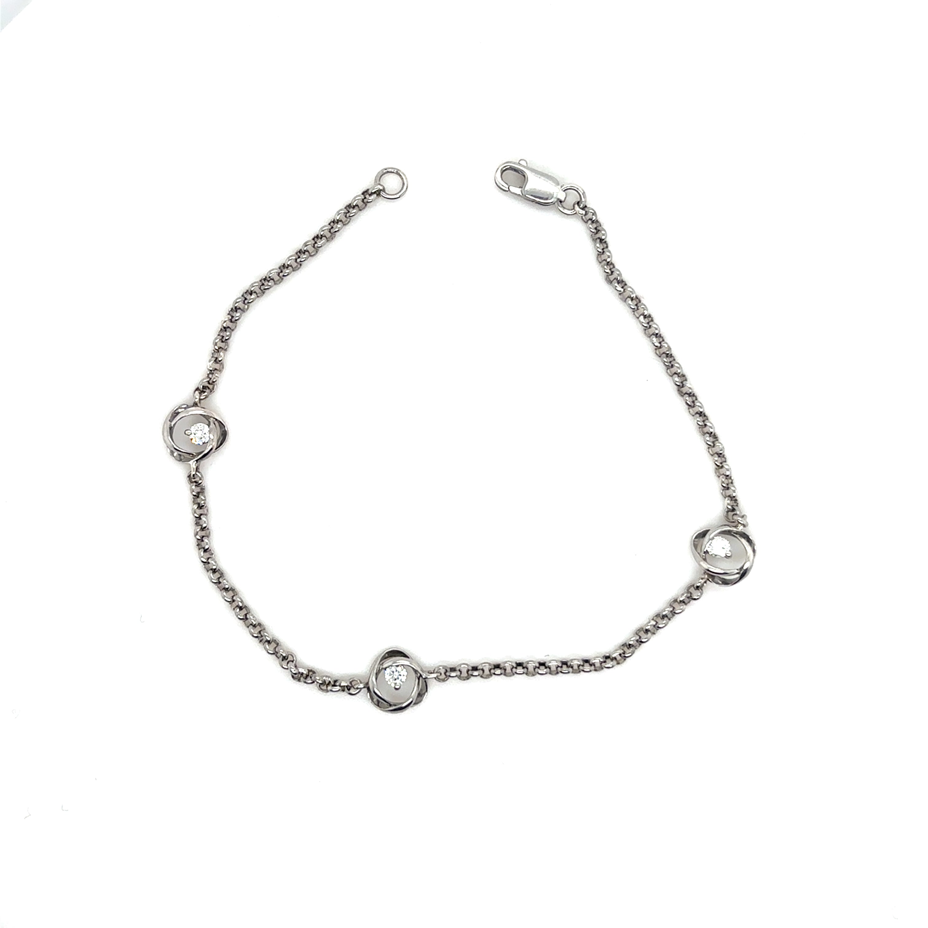 Time & Eternity 925 White Sterling Silver Station Diamond Bracelet set with 3 Round-shape Diamonds I-J Color I1/I2 Clarity . This bracelet's total carat weight is .13ctw.