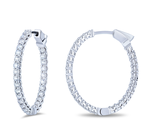 Bremer Jewelry Round Medium Hoop Diamond Earrings in 18K White Gold (3.99ctw)