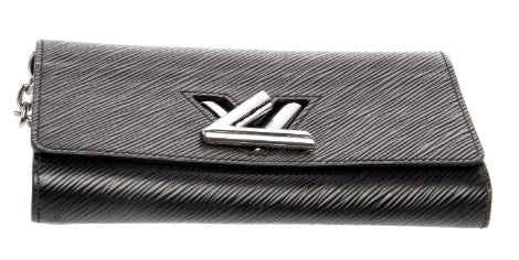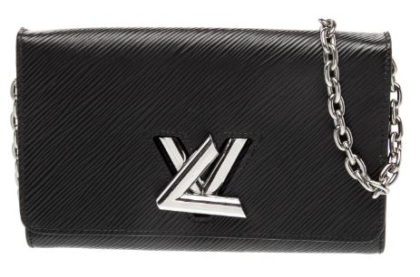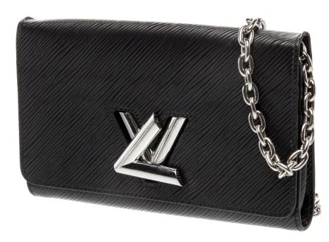 Pre-Owned Louis Vuitton Twist Chain Wallet Epi Leather. A sleek, versatile companion, this Louis Vuitton Twist Wallet on Chain features the distinctive Epi leather in black. The polished LV twist-lock and removable chain strap offer effortless day-to-night styling, while its compact design keeps essentials secure.