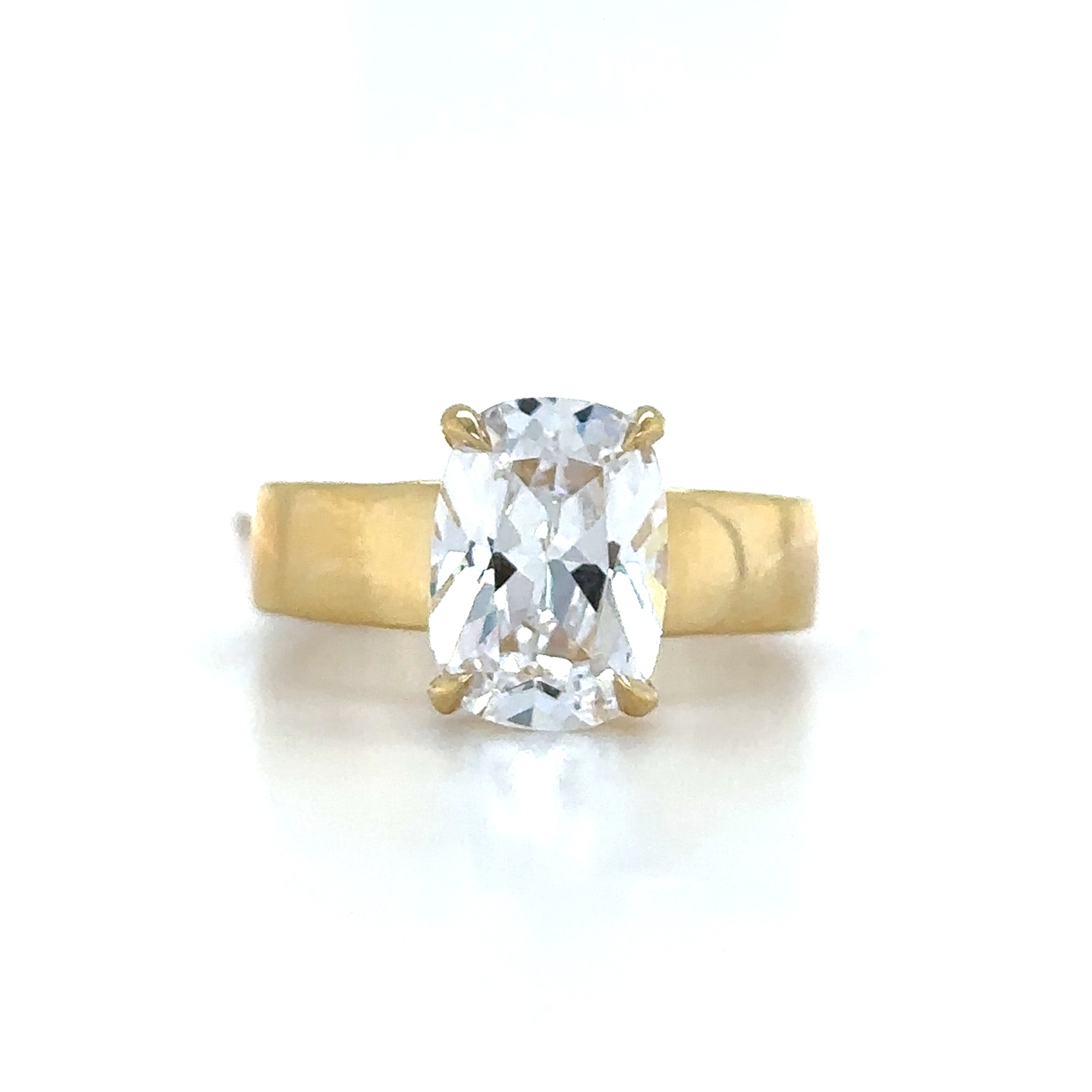A. JAFFE 14K Yellow Gold Hidden Halo Diamond Engagement Ring Setting designed to hold a 4.00 carat Cushion shape center stone and set with 20 Round-shape side Diamonds (0.10ctw) G-H Color SI Clarity.