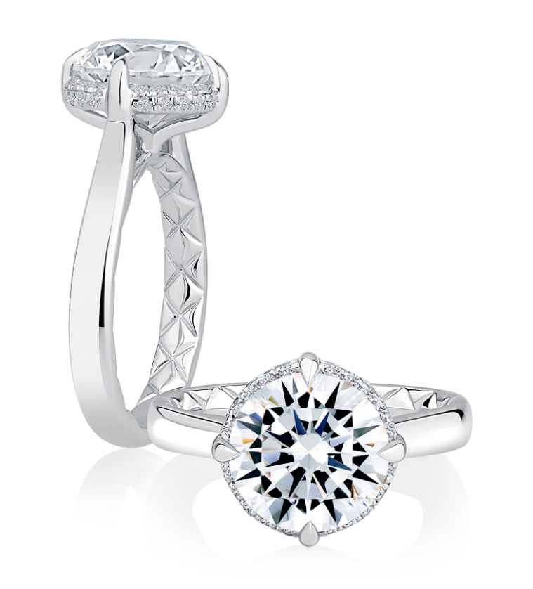 A. JAFFE Round Center Hidden Halo Diamond Engagement Ring Setting in 14K White Gold (.20ctw)