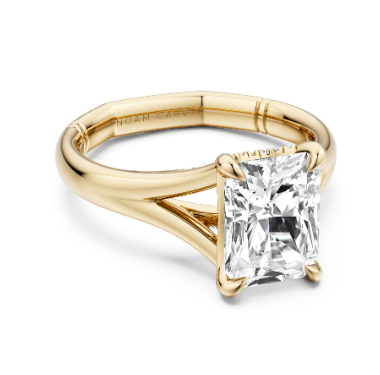 Noam Carver 14K Yellow Gold Hidden Halo Diamond Engagement Ring Setting designed to hold a 2.00 carat Radiant shape center stone and set with 26 Round-shape side Diamonds (0.07ctw) F-G Color VS Clarity.