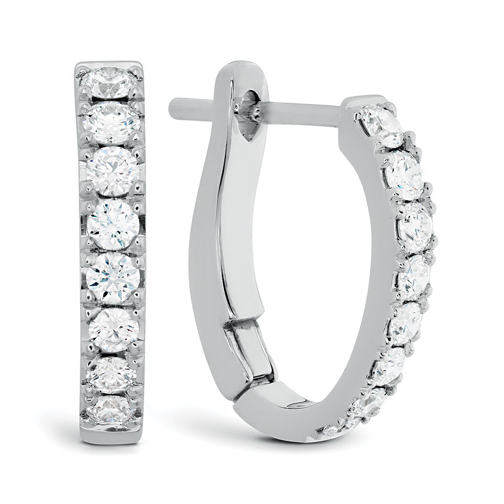 Hearts On Fire Mini Hoop Graduated Round Small Hoop Diamond Earrings in 18K White Gold (.32ctw)