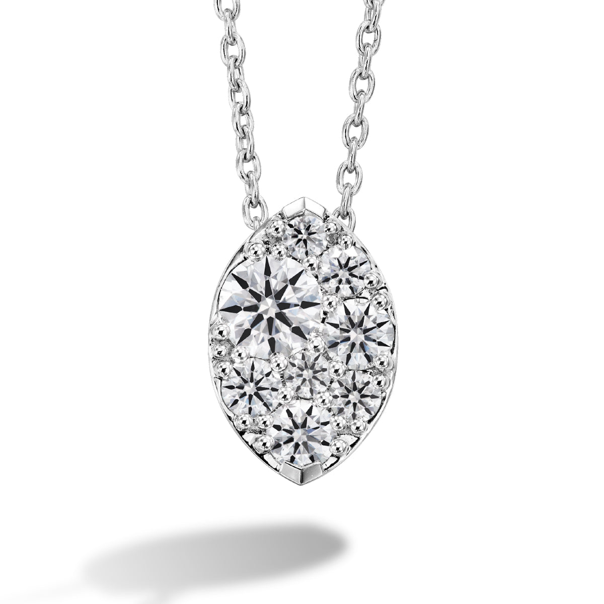 Hearts On Fire 18K White Gold Tessa Cluster Pendant with 18K White Gold Link Necklace set with Round-shape Diamond (0.45ct) G-H Color SI Clarity . This necklace's total carat weight is 0.50ctw.