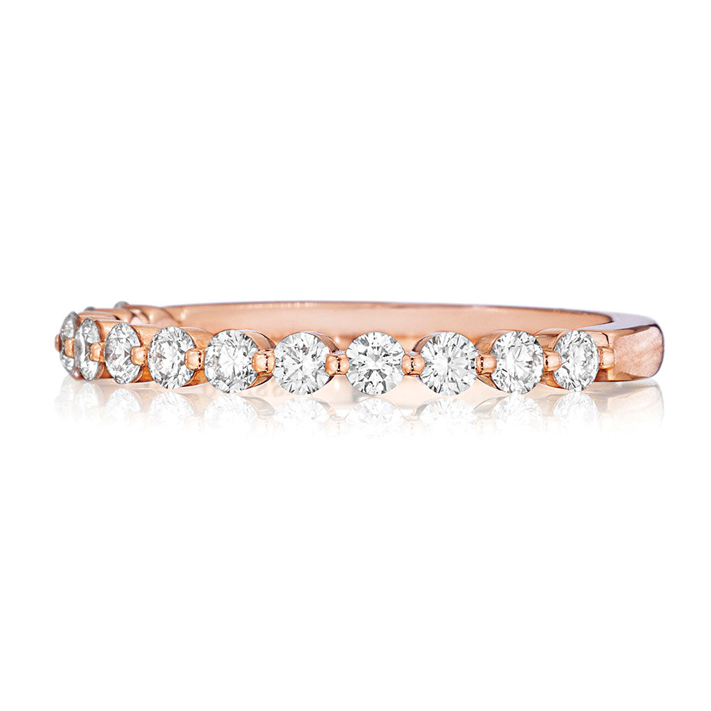 Henri Daussi Half Anniversary Diamond Wedding Ring in 14K Rose Gold set with 1 Round-shape Diamond (0.50 ctw) H-I Color SI Clarity .