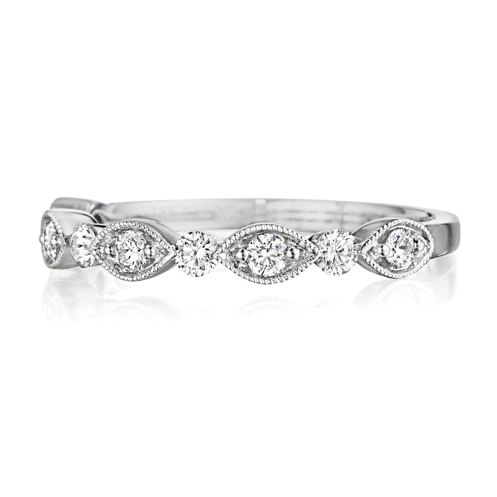 Henri Daussi Half Anniversary Diamond Wedding Ring in 14K White Gold set with Round-shape Diamond (0.30 ctw) H-I Color SI Clarity .