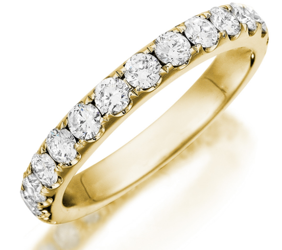 Henri Daussi Half Anniversary Diamond Wedding Ring in 14K Yellow Gold set with 13 Round-shape Diamonds (0.70 ctw) H-I Color SI Clarity .