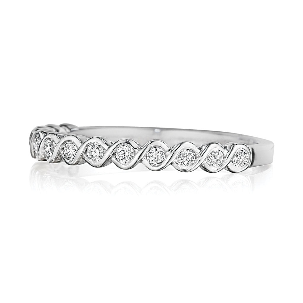 Henri Daussi Half Anniversary Diamond Wedding Ring in 18K White Gold set with Round-shape Diamond (0.17 ctw) H-I Color SI Clarity .