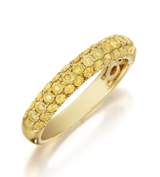 Henri Daussi 14K White Gold Half Anniversary Fashion Ring set with Round-shape Diamond Yellow Shades Color SI Clarity . This ring's total carat weight is .95ctw.