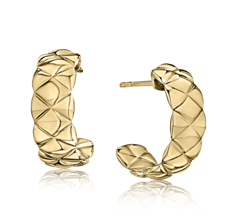 A. JAFFE Double Textured 14K Yellow Gold Small Hoop Earrings.